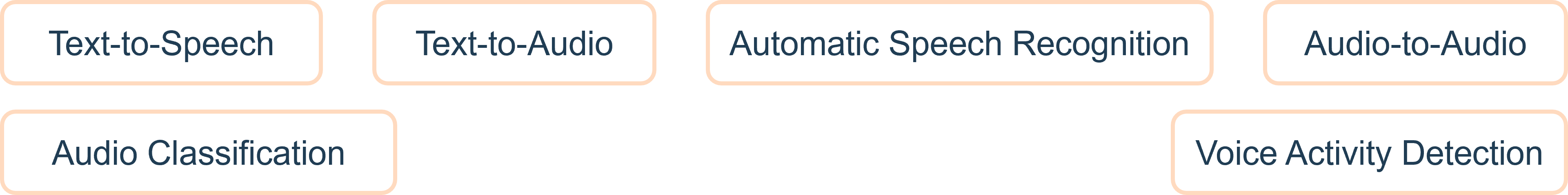 - Audio-to-Audio: Transform or enhance audio signals