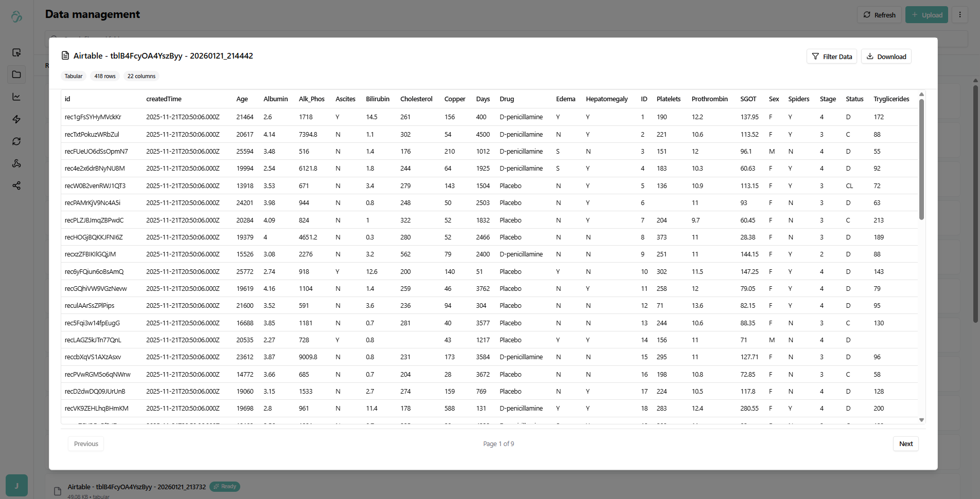 - The synchronized data will automatically appear in the Data Management section and you can preview it