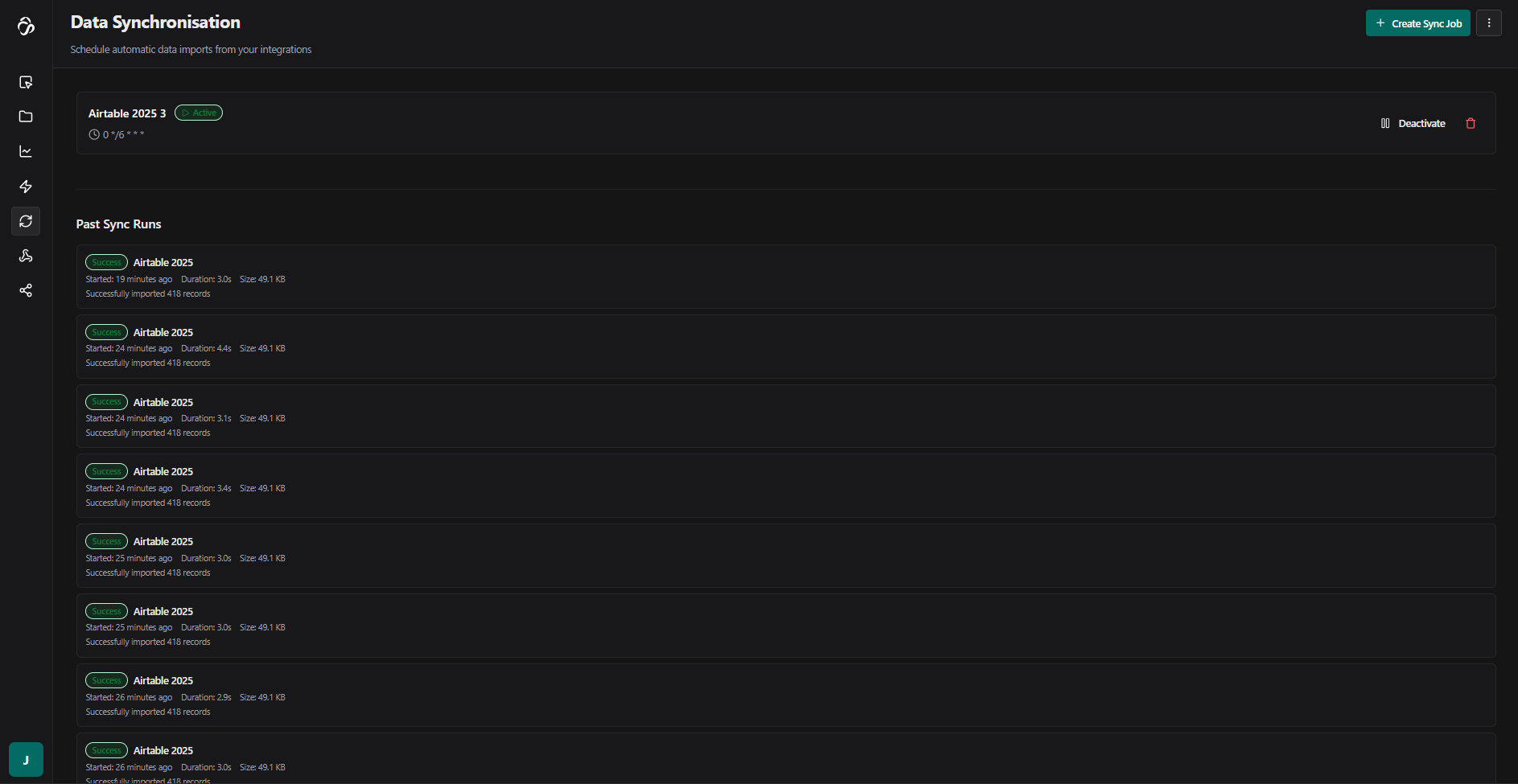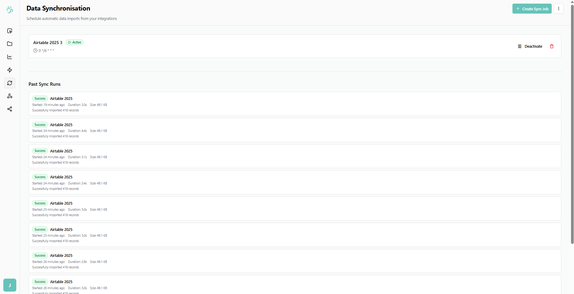 To update the data regularly, you can create a sync job. Click on the calendar icon to open the sync job page.