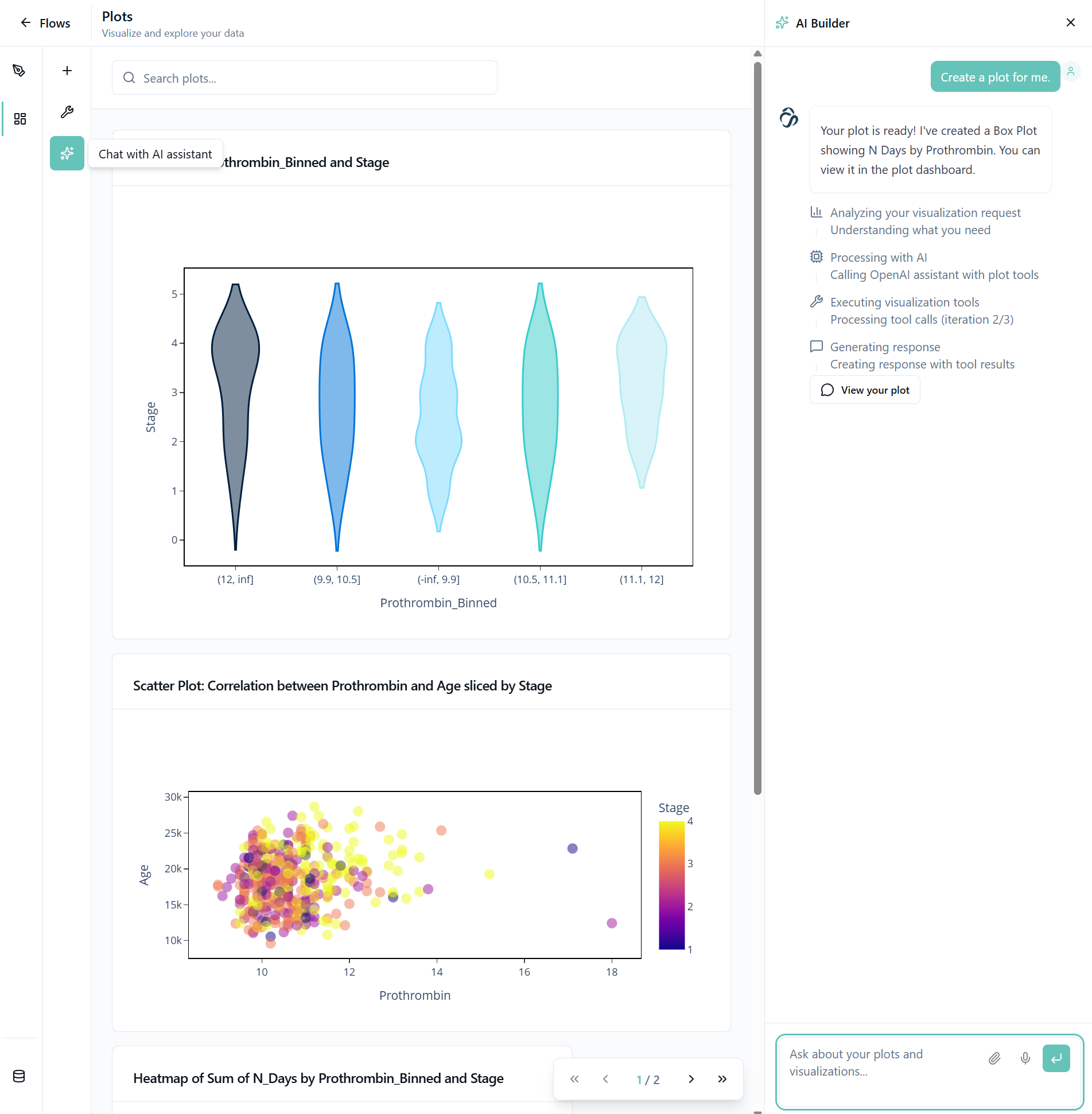 - Create plots conversationally: Use commands like "Create a bar chart showing sales by region"