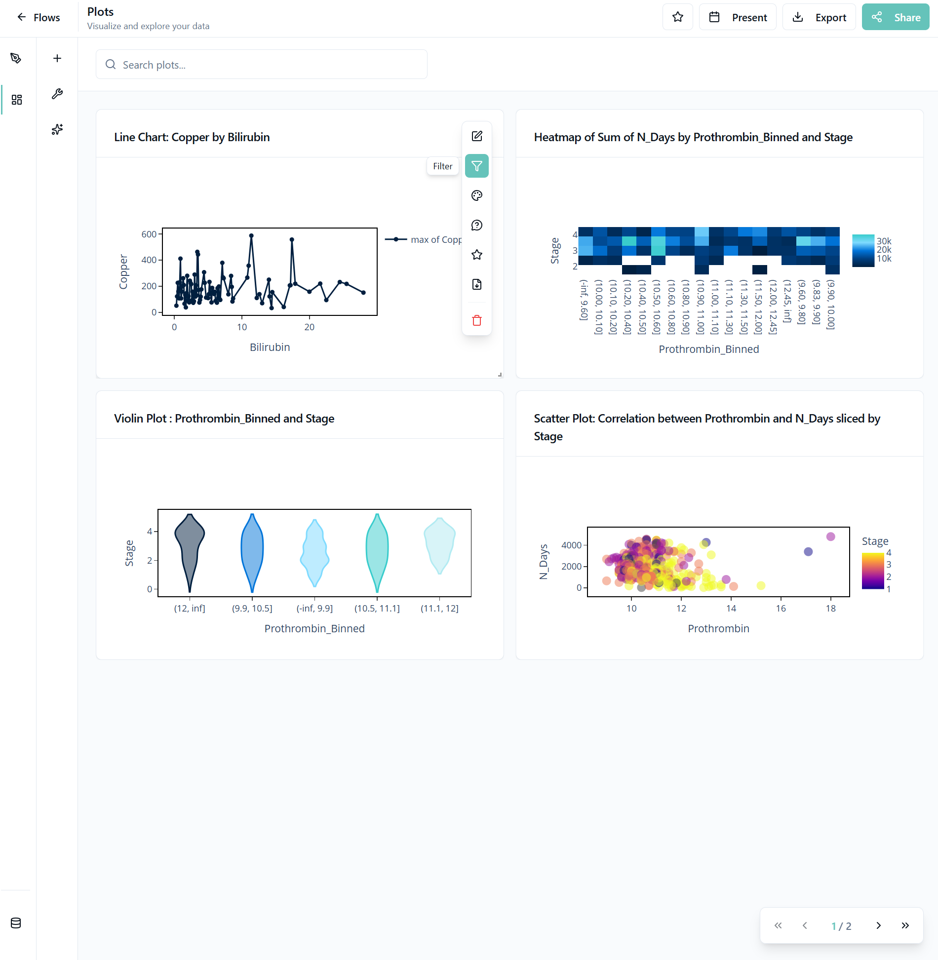Apply filters to focus your analysis on specific data subsets. For example, to filter for female participants, hover over the plot and click on the filter icon.