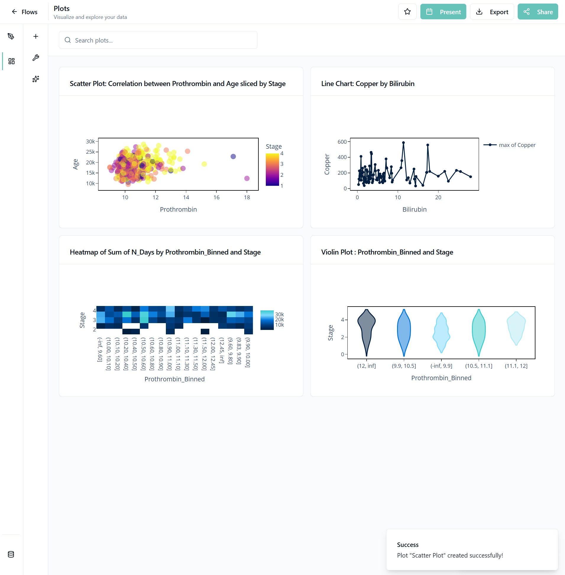 The Plots Module transforms your data into beautiful, interactive visualizations. With AI-powered suggestions, automatic field detection, and comprehensive customization options, you can create professional dashboards and share insights with your team.